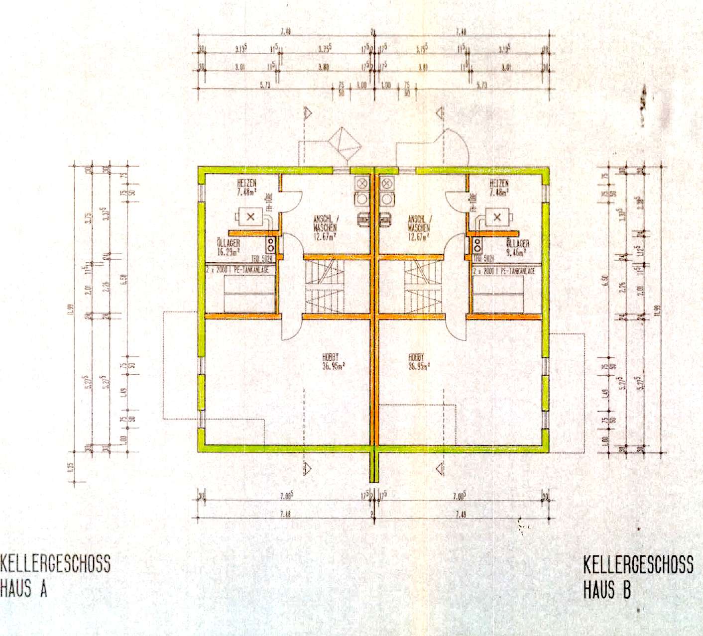 Der vollunterkellerte Teil der Doppelhaushälfte bietet Ihnen viel Nutzfläche für einen Hauswirtschaftsraum den Heizungs- und Tankraum sowie einen großen Lagerraum für Lebensmittel.