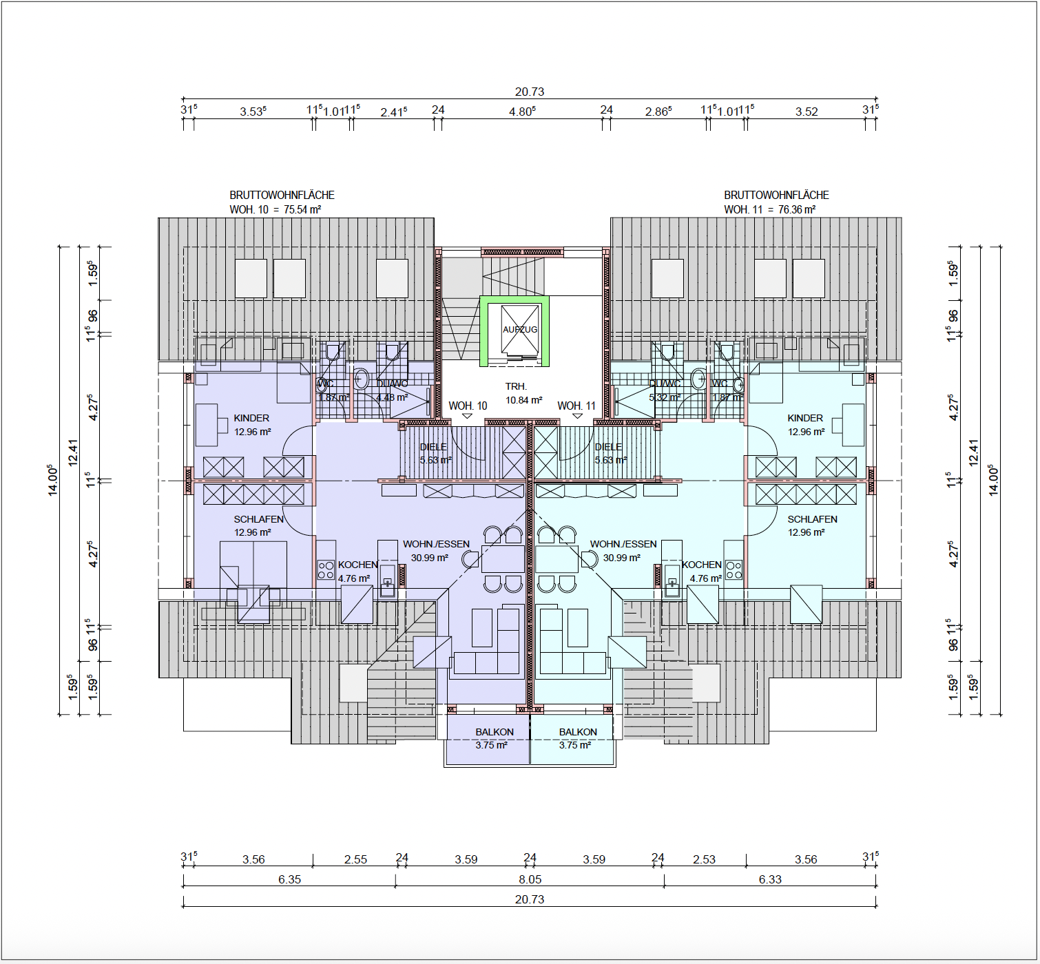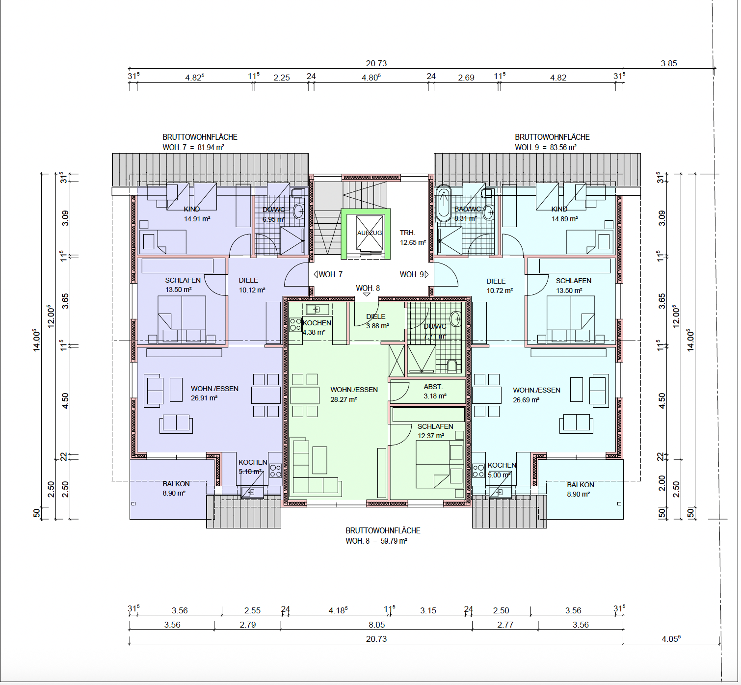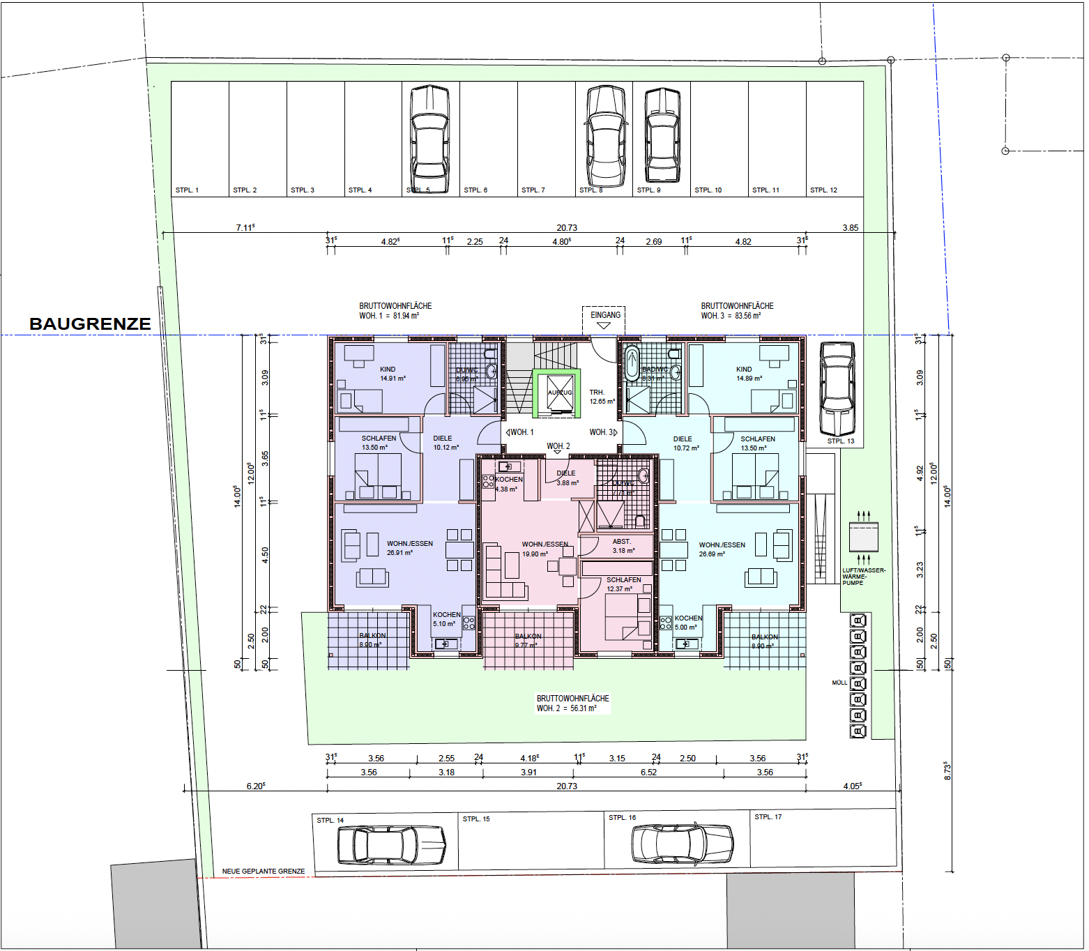 - Projekt im hinteren Teil des Grundstücks mit einer Gesamtwohnfläche von ca. 821 qm und 11 Wohneinheiten