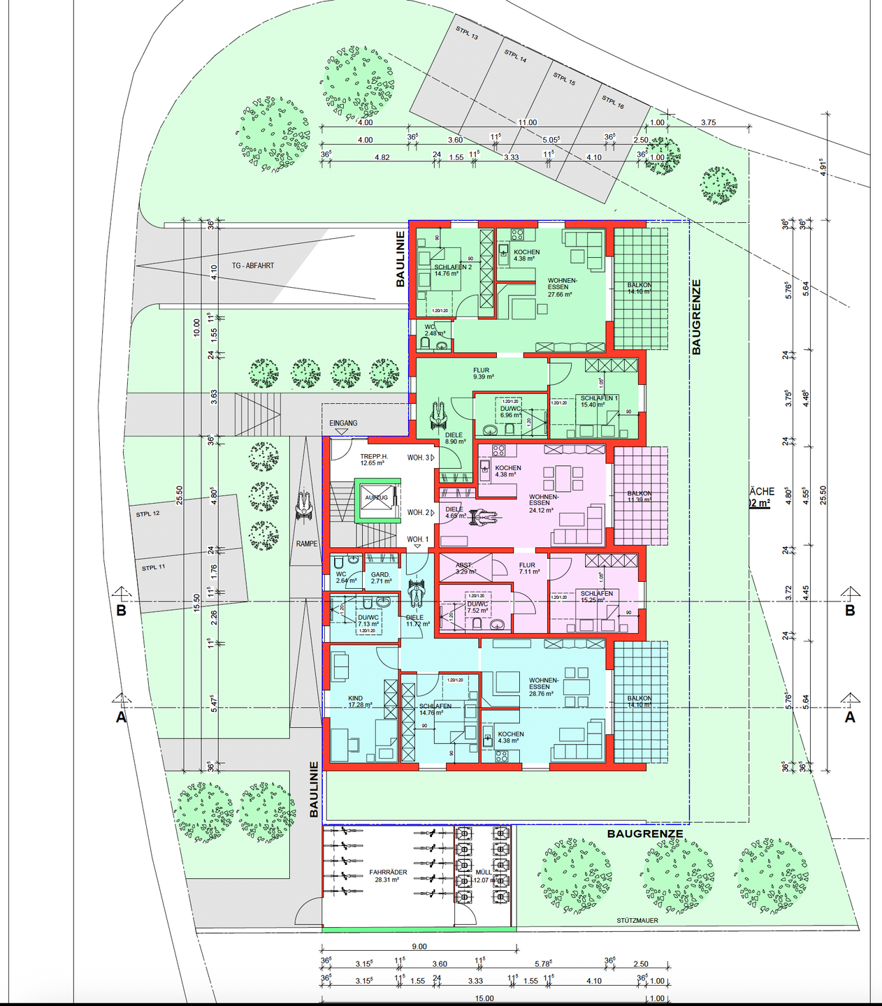 Grundstück für Projekt mit 8 Einheiten, Tiefgarage und Aufzug in ruhiger Wohnlage