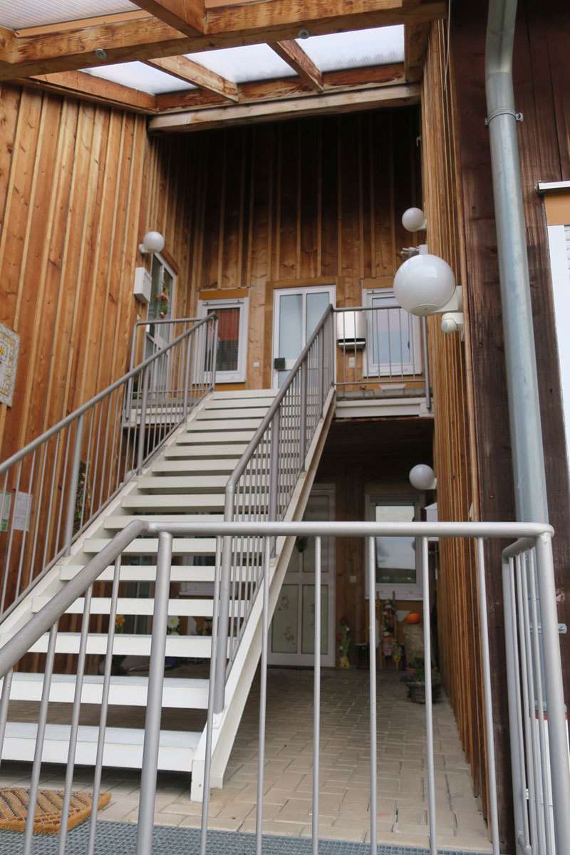 Außenwände: Stahlkonstruktion mit Massivholzfüllung